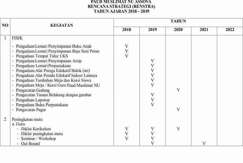 B. PROGRAM KERJA TAHUNAN KEPALA PAUD MUSLIMAT NU ASSOVA TAHUN PELAJARAN 2018/2019