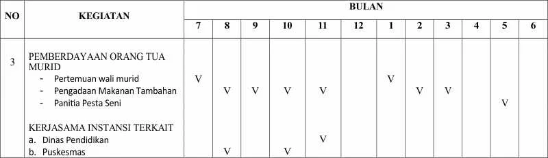 - d. Menjalin kerjasama dengan seluruh unsur pendukung sekolah untuk meningkatkan dan mengembangkan program sekolah.